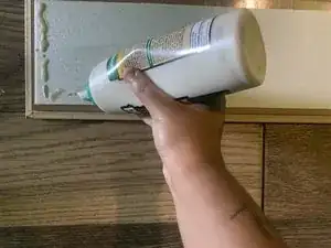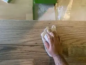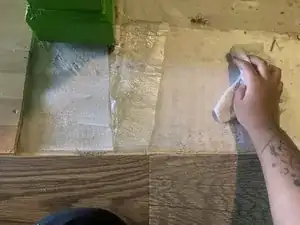 Нанесите дерево-клей на нижнюю сторону половицы.