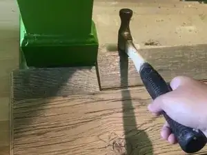 Поставьте тяжелый предмет сверху на половицу на несколько минут.