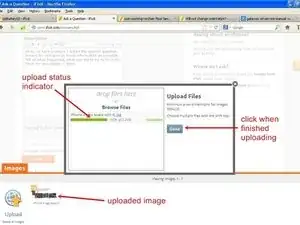 Закройте окно загрузки изображений, нажав на оранжевую вкладку «Изображение». Если положение изображения и описание проблемы устраивают, нажмите оранжевую вкладку «Задать вопрос». Вопрос с изображением будет опубликован.