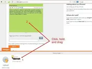 Когда файл отображается в нижнем окне, щёлкните по изображению левой кнопкой и удерживайте нажатой. Затем перетащите изображение в текстовое окно вопроса. Это действие будет заметно: фон текстового окна вопроса изменится. Отпустите левую кнопку мыши, когда курсор находится в текстовом окне вопроса.