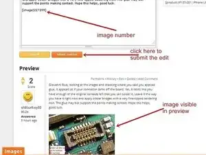 Закройте окно загрузки изображения, нажав на оранжевую вкладку "Изображение". Если положение изображения, а также остальная часть редактирования удовлетворительны, нажмите на оранжевую вкладку "Отправить правку". Это опубликует отредактированный ответ с изображением.