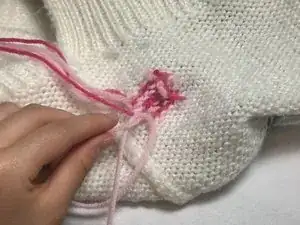 Обрежьте нить, оставив достаточно пряжи, чтобы закрыть остальную часть дыры.