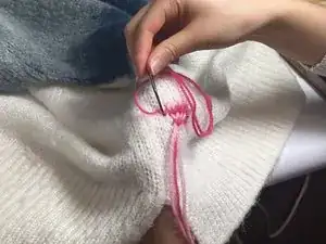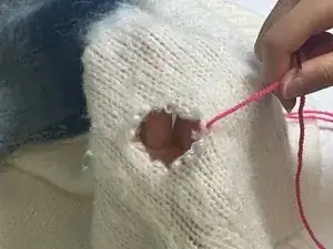 Проденьте нить через край повреждённой дыры.