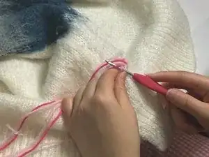 Зацепите тёмно‑розовую пряжу.