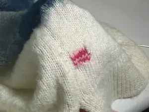 Заправьте свисающие концы пряжи на изнаночную сторону.