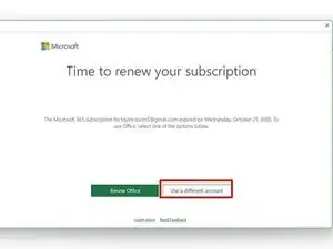 Опция использовать другую учетную запись перенесет вас на новый экран, где вы увидите вариант для ввода вашего ключа продукта.