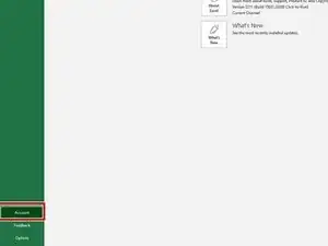 1. Нажмите кнопку Учетная запись в нижнем левом углу окна приложения Office.