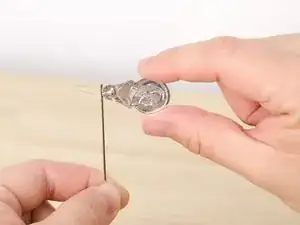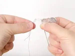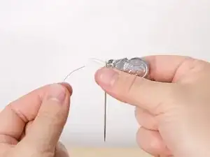 Вставьте проволочный петельку нитковдевателя в ушко иглы.