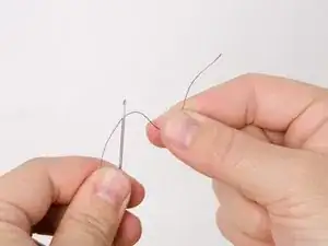 Это зафиксирует иглу в петельке нитки и позволит вам шить двойной нитью. Если вы предпочитаете шить одной ниткой, завяжите узел только на одной из нитей, а не на обеих.