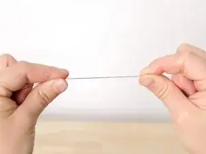 Потяните за хвостовой конец нитки, пока обе нити не станут равны по длине.