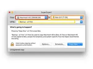 Для клонирования жесткого диска мы рекомендуем программу SuperDuper!, от Shirt Pocket Software.
