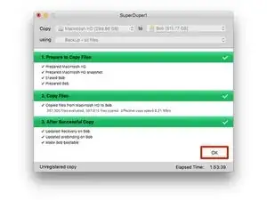После завершения копирования нажмите "Ok" и закройте SuperDuper!