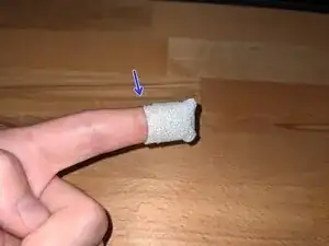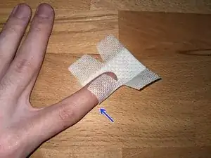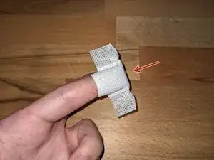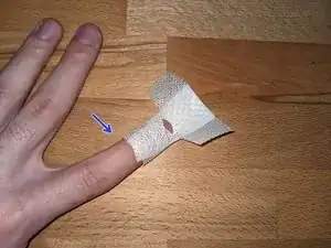 Тяните пластырь как можно плотнее над кончиком пальца к задней части и поверните палец так, чтобы его нижняя сторона оказалась вверх.
