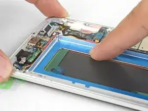 Плотно прижмите периметр аккумулятора пальцами, чтобы помочь клею зацепиться.