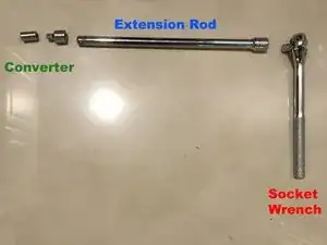 Удалите винты (3) под стиральной машиной с помощью трещотки, удлинителя и переходника.