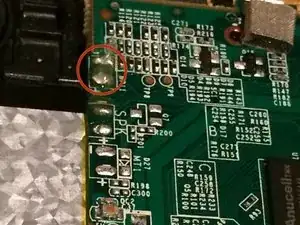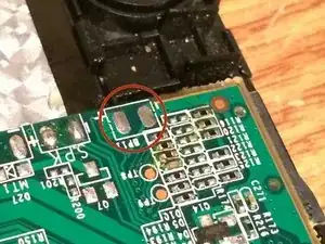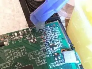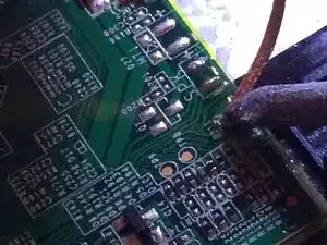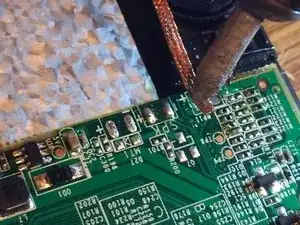Поднимите оплетку и паяльник одновременно с материнской платы. Несоблюдение этого может привести к затвердеванию оставшегося припоя и припаиванию оплетки к материнской плате, что может легко оторвать паяный контакт материнской платы.
