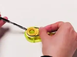 Распутайте пластиковую ленту, вращая большую шестерню по кругу в противоположном направлении от спирали.