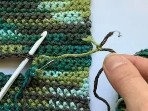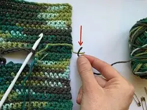 Обрежьте пряжу, оставив хвостик длиной около 10 см.