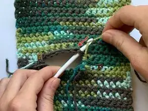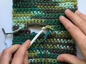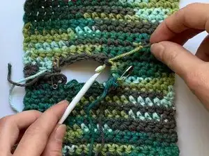 Как отремонтировать дыру в вязаной крючком кухонной тряпке