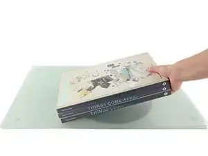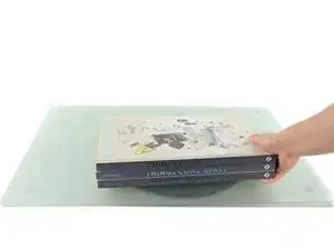 Подложите тяжелые книги или другой плоский тяжелый предмет на стекло.