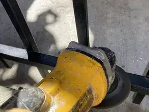 Сварку необходимо выполнять не только в открытом и чистом месте, но и при дневном свете, чтобы можно было видеть через маску (визор сильно затемнён, ночью через него не разглядеть). Диск угловой шлифмашины, который я использовал в этом быстром ремонте, имел размер 4 1/2 дюйма. Можно использовать любой размер, поскольку он служит только для удаления остатков и краски.