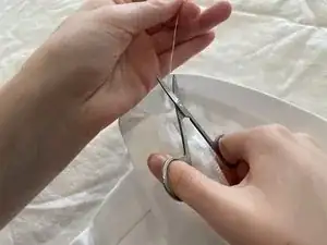 Обрежьте нитку ножницами, оставив приблизительно 10 см до 15 см нитки.