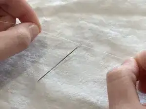 Не вытягивайте нитку полностью через отверстие, так как это не позволит вам выполнять стежки во время шитья.