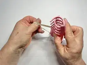Обвяжите резинку вокруг зажима, чтобы зафиксировать части на месте.