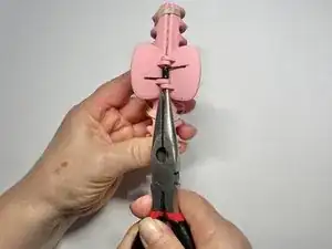 Используйте плоскогубцы, чтобы протолкнуть штифт через пружину и оставшиеся отверстия.