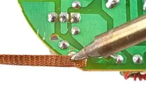 Если оплетка не впитывает припой, возможно, нужно повысить температуру. Оплетка также может быть окислена из‑за старения — нанесите больше флюса или попробуйте новую катушку оплетки.