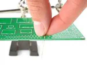 Зафиксируйте плату в тисках или в инструменте «помогающие руки». Разместите плату под углом так, чтобы вы могли легко получить доступ к паяльным площадкам. Наденьте защитные очки.