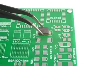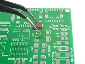 Аккуратно прижмите пинцетом или концом лопатки компонент сверху, чтобы зафиксировать его на месте.