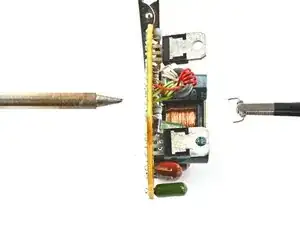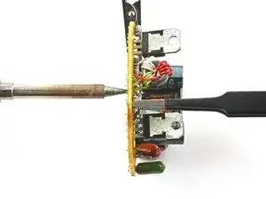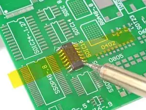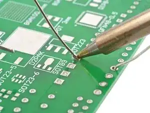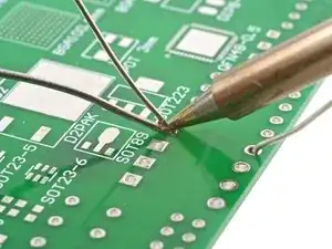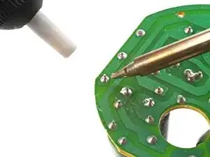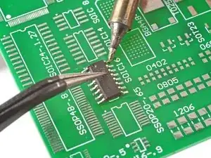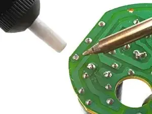 Паяльник рассеивает много тепла вокруг точки контакта, что может легко ослабить соседние компоненты. Будьте осторожны, чтобы не задеть окружающие детали инструментами.