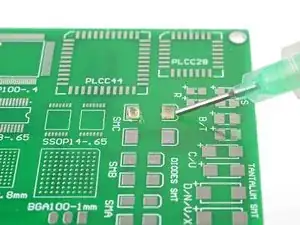 Нанесите небольшую каплю флюса на каждую паяльную площадку.