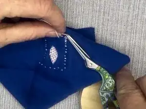 Надёжно пришейте нить к ткани перед обрезкой излишков нити.