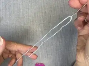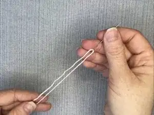 Протяните нить через стежок, оставив хвостик примерно в два дюйма.