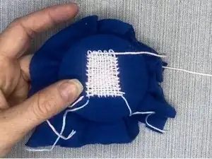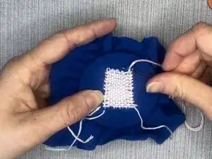 Протяните оставшиеся нити в конце заплатки на изнаночную сторону ткани и тщательно пришейте их к основе.