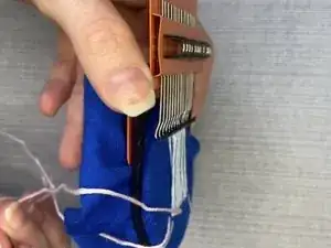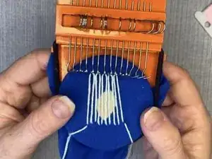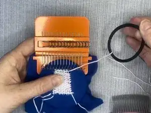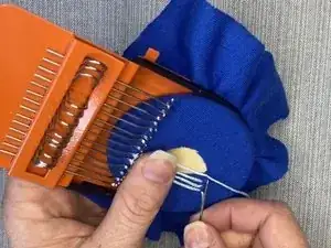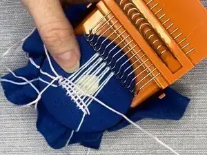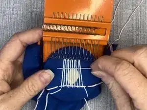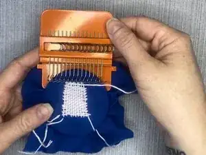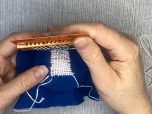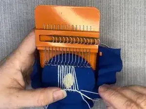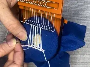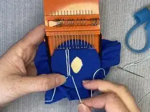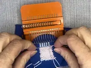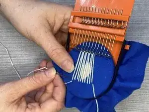Повторяйте эти шаги, перемещая металлические крючки каждый раз между прошивками и проведением иглы и нити через вертикальные нити.