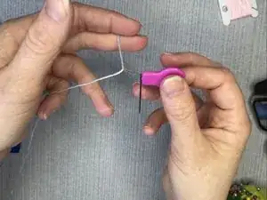 Наведите нить в иглу.