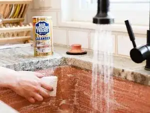 Нанесите Bar Keeper's Friend на пятна или другие остатки загрязнений