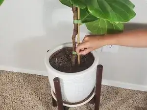 Это руководство предназначено для повторной установки опоры у переросшего фикуса лировидного. Повторная установка опоры улучшит условия жизни растения и обеспечит здоровый рост. В этом руководстве показаны шаги, необходимые для повторной установки опоры комнатного растения. В этих шагах использован фикус лировидный, но любое комнатное растение подойдет при следовании этому руководству.