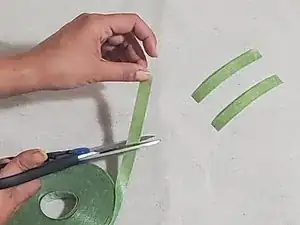 Отрежьте три‑пять отрезков липкой ленты для растений или верёвки длиной примерно пять дюймов.