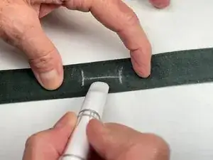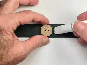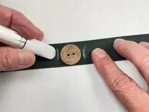 С помощью маркера проведите вертикальную линию чуть левее пуговицы.