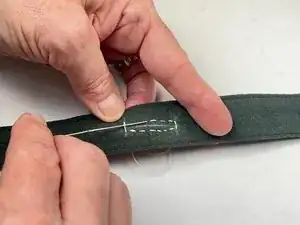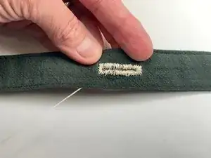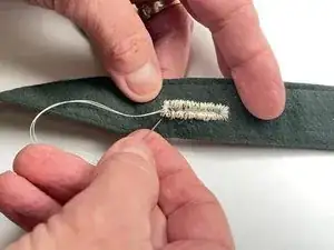 Дойдя до левого края, выполните ряд мелких горизонтальных стежков вокруг этого конца, пока не вернётесь в исходную точку.