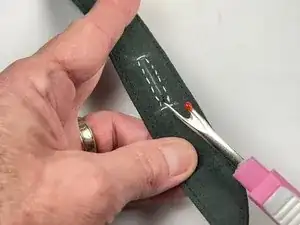 Используйте распарыватель швов, чтобы проколоть отверстие в ткани, достаточное для ножниц.