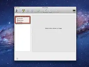 В левой колонке выберите диск запуска Mac OS X.