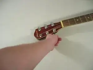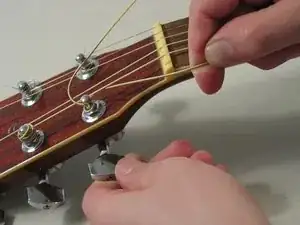 Накрутите струну до тех пор, пока она не станет достаточно натянутой, а затем прижмите ее к канавке грифом.