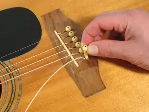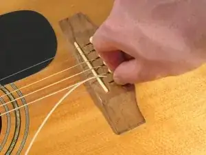 Удалите пин моста, чтобы освободить другую сторону струны.