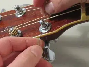 Вставьте другую сторону струны гитары через ключевое отверстие колка.