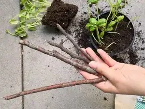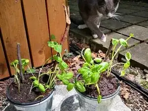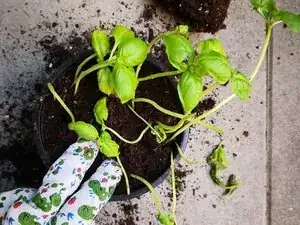 Чтобы помочь побегам базилика восстановиться, можно собрать несколько веточек и воткнуть их в землю в качестве опоры.